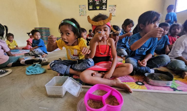 We provide meals for children who attend schools in remote areas in Indonesia 3 times per week to improve their nutrition status. These children usually go to school without having breakfast because they came from impoverished families who can't afford meals everyday.